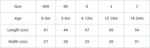 | Sleeve Length (cm) | 35 | 37 | 39.50 | 42 | 44.50 | 45.50 |