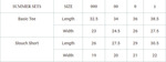 | Length (cm) | 32.5 | 34 | 36 | 38.5 |