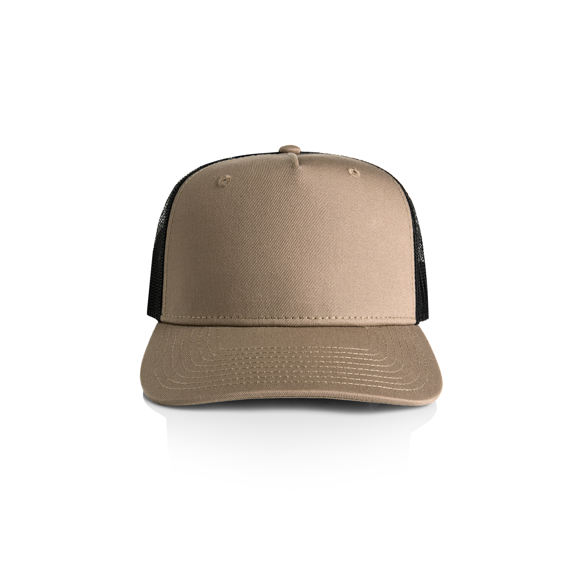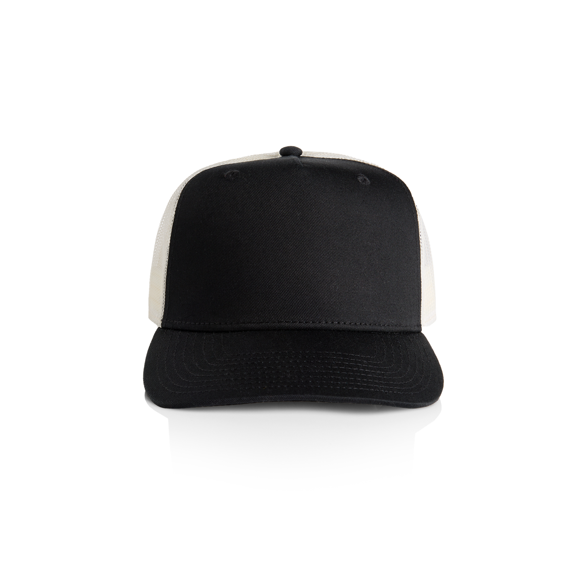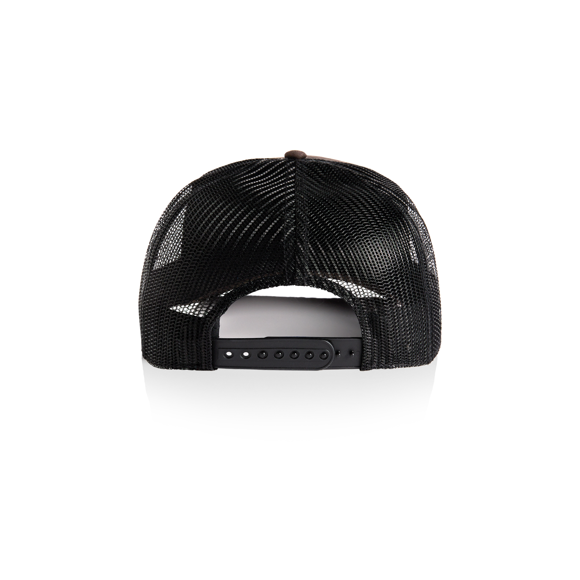 Contrast front foam panel, plastic snapback, tonal under-peak lining, mesh back
