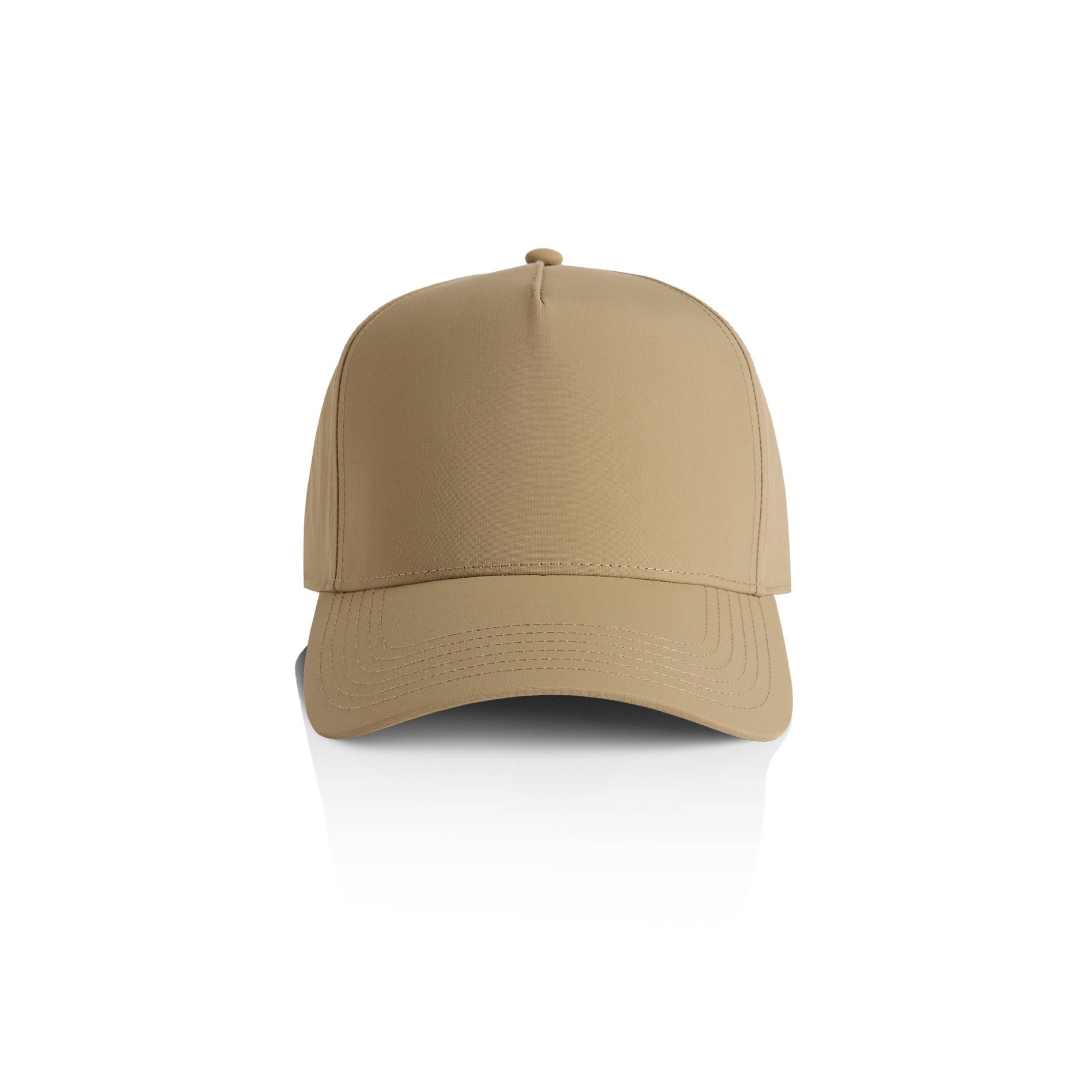 Single panel at front, quick dry fabric, plastic snapback, tonal under-peak lining