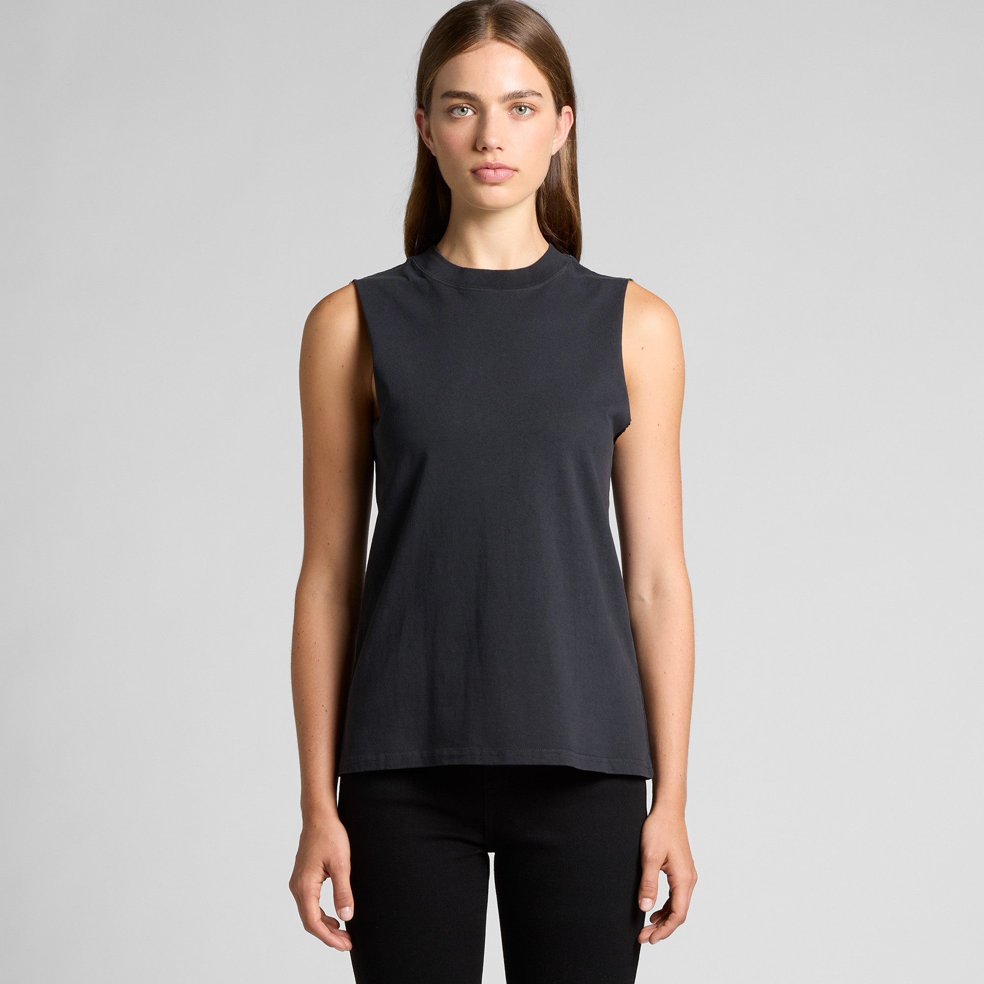 Wide neck ribbing with twin stitching, raw armholes, side seamed, shoulder to shoulder tape, double needle hems, garment dyed, preshrunk to minimise shrinkage